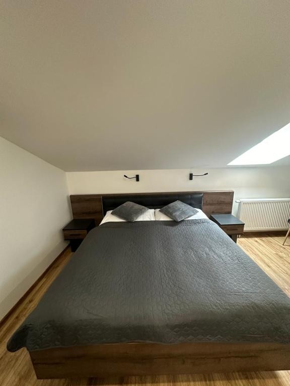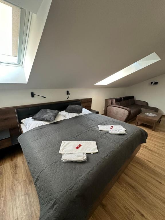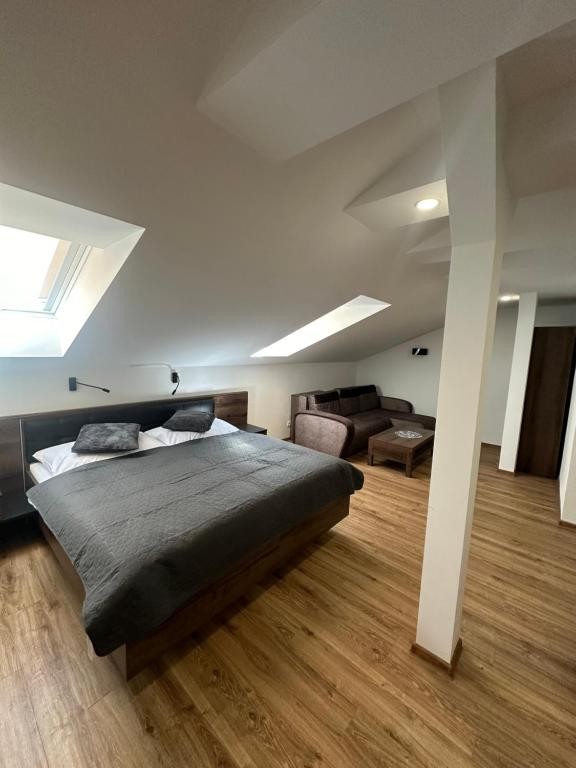 - Jednoizbový apartmán – 1 veľká manželská posteľ, klimatizácia, TV, súkromná kúpeľňa so sprchou a WC, ideálny pre 2 osoby.