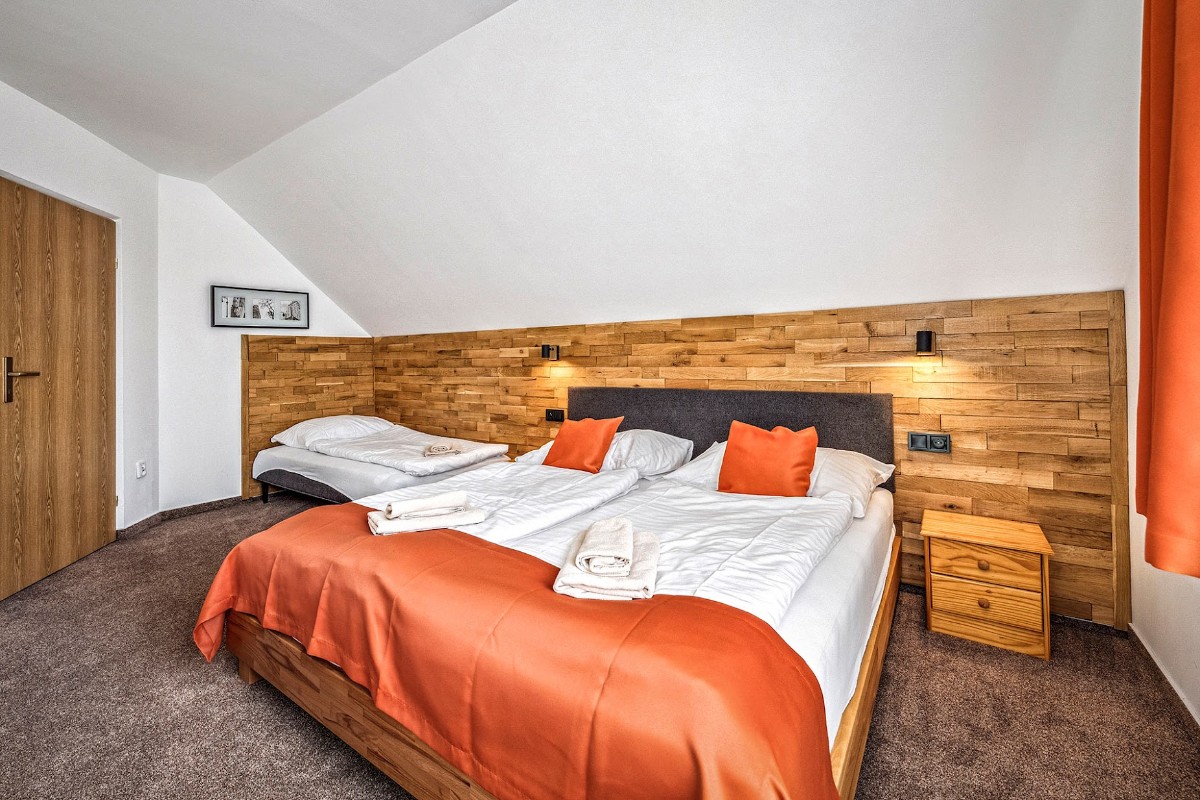 - spálňa - 1 manželská posteľ + 1 posteľ + 1 prístelka