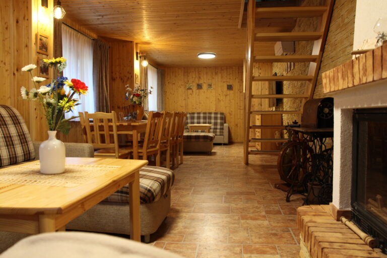 Spoločné priestory: Ďalšie možnosti prenocovania (prístelky) sa nachádzajú v spoločenskej miestnosti na rozkladacích súpravách, čím sa maximálna kapacita chaty navýši z 12 na 18 osôb.
