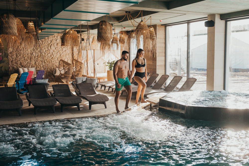 • Saunový svet Crystal SPA vo vnútorných a vonkajších priestoroch: 7 typov sáun vrátane fínskej, parnej či infrasauny, horskej ceremoniálnej, bylinkovej biosauny, panoramatickej a soľnej sauny, tepidárium, vírivka, ochladzovacie bazény, oddychové zóny s krbom, relaxačný bazén a ochladzovacie jazierko.