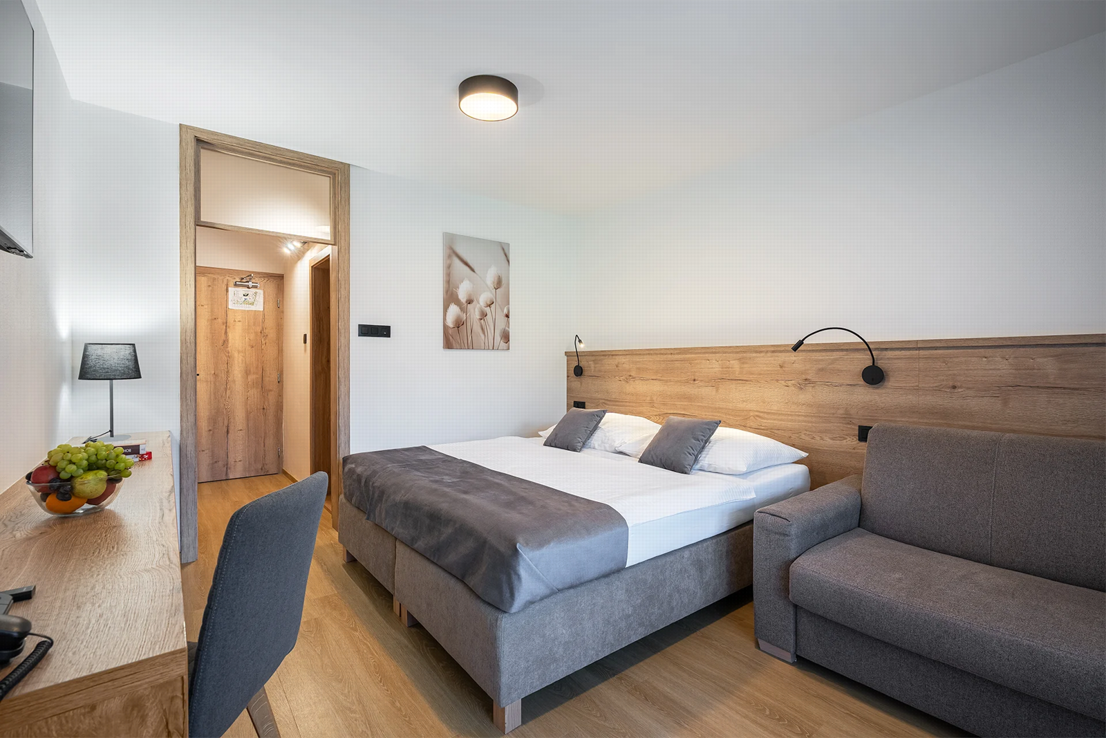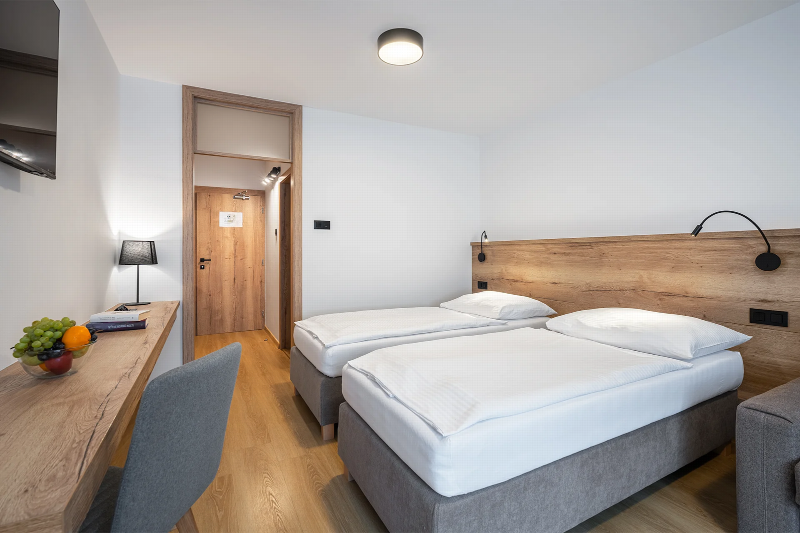 - příplatek za rodinný pokoj / rodinný pokoj obsazený 2 osobami 50 € / noc / pokoj, rodinný pokoj obsazený 3 a více osobami 70 € / noc / pokoj