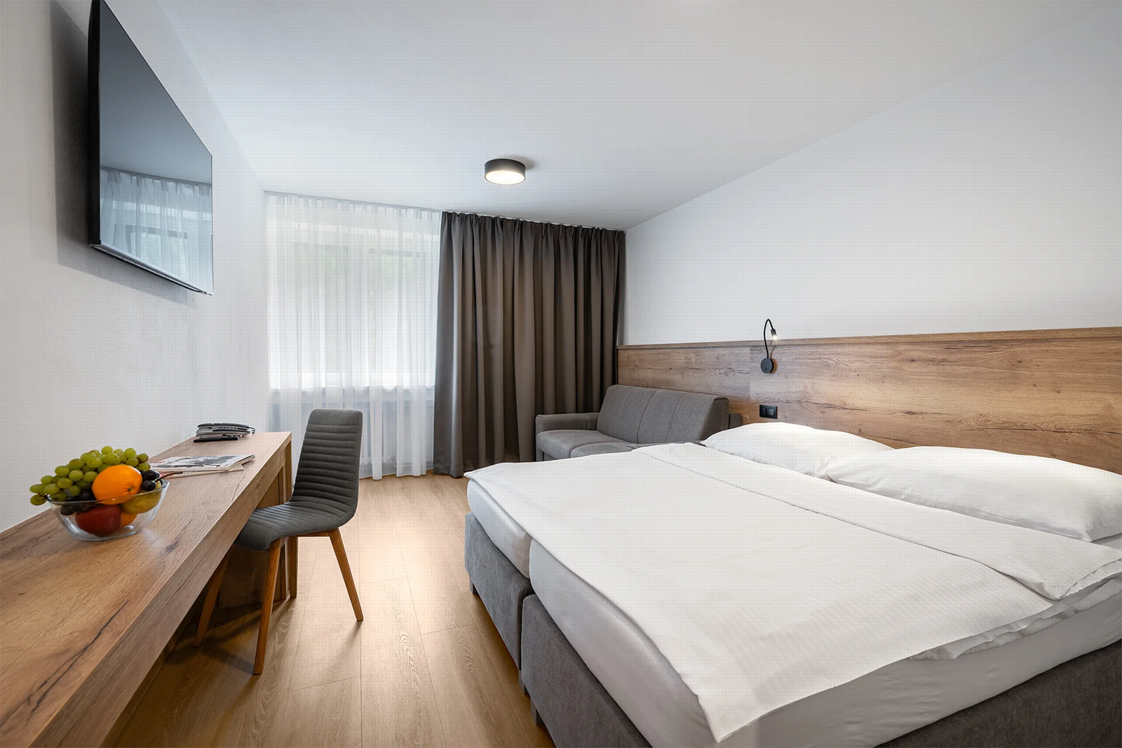 - Parkování: Monitorované parkoviště u hotelu zdarma.
