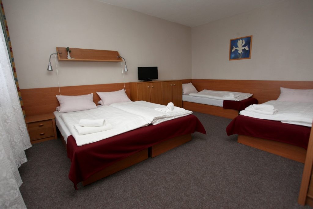 3x samostatné lôžko s možnosťou spojenia, TV, WiFi, sociálne zariadenie so sprchovacím kútom - Štvorlôžková izba s balkónom