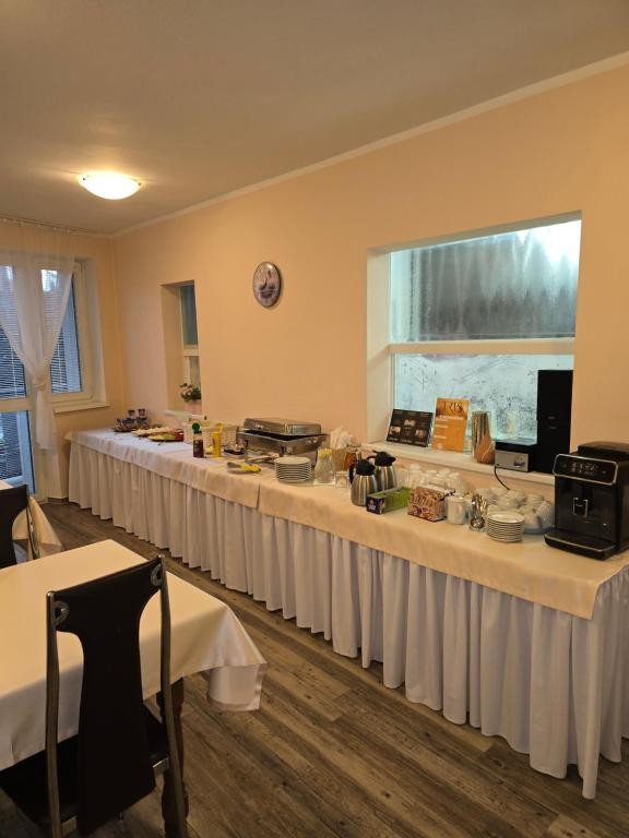 V jedálni penziónu s domácou atmosférou si je môžné v pokoji vychutnať raňajky a obedy či večere (po dohode). Personál rád vyhovie aj individuálnym a špeciálnym požiadavkam klientov na stravu. Jedáleň je tiež vhodná na usporiadanie rodinných osláv, firemných podujatí či iných spoločenských akcií.