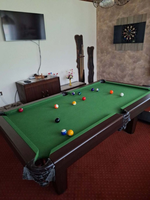Prázdninový dom ponúka komfortné ubytovanie pre 11 osôb v štyroch priestranných a vkusne zariadených spálňach. K dispozícii sú tri 3-lôžkové izby (manželská posteľ + jednolôžko, možnosť detskej postieľky) a jedna 2-lôžková izba s oddelenými posteľami. Objekt má tri moderné kúpeľne s toaletami, plne vybavenú kuchyňu a veľkú spoločenskú miestnosť s biliardom, šípkami, krbom a TV. Pre mamičky s malými deťmi sú k dispozícii detská postielka, jedálenská stolička, športový kočík a ďalšie pomôcky.