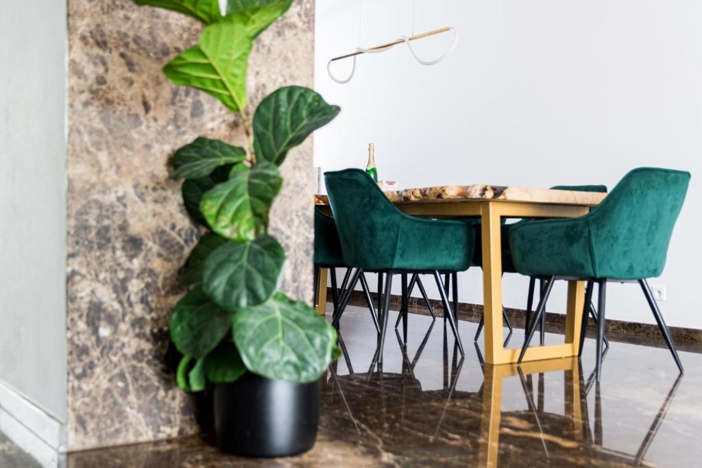 - Kuchynský kút : chladnička, kávovar, mikrovlnná rúra, rýchlovarná kanvica, umývačka riadu, rúra, sporák, kuchynský riad a príslušenstvo