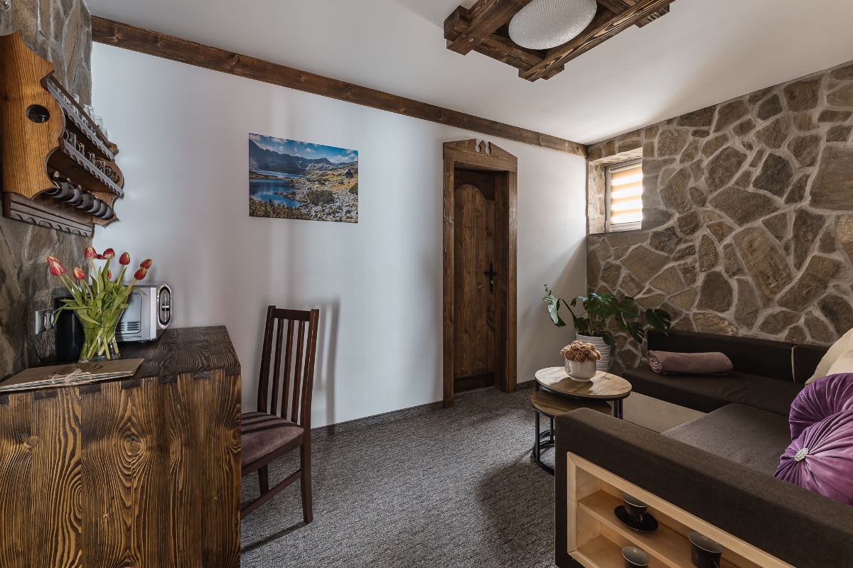 Štýlový penzión v rázovitej goralskej obci Ždiar v samotnom srdci Belianskych Tatier ponúka ubytovanie v 11 komfortne zariadených izbách so sociálnym zariadením a spoločenskú miestnosť, kde je možné zabaviť sa s rodinou alebo priateľmi hraním stolného futbalu alebo sledovaním televízora. Jedlo sa dá pripraviť v raňajkovej kuchynke a po dohode si môžu ubytovaní hostia v penzióne objednať raňajky, večeru alebo polpenziu. K dispozícii je aj wellness ponúkajúci vírivku, masáže a saunu. V exteriéri penziónu je upravený areál s altánkom, pre deti je pripravené detské ihrisko s pieskoviskom, hojdačkou, preliezkami a šmýkačkou. Samozrejmosťou je bezplatné WiFi pripojenie na internet a parkovanie zabezpečené priamo pri penzióne. Celková kapacita ubytovania je 36 osôb (34 lôžok, 2 prístelky). Ubytovanie vhodné pre rodiny s deťmi alebo skupiny priateľov či turistov.